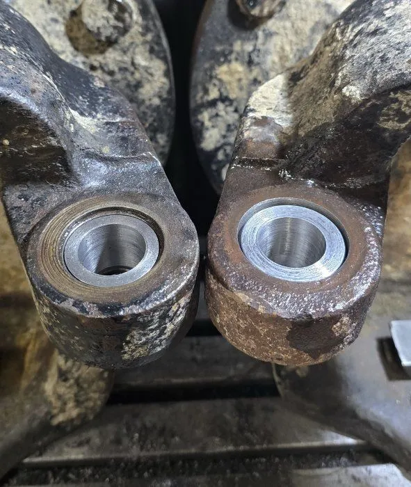 Осуществляем ремонт конусного отверстия в поворотном кулаке ( 448/42602 и других подобных) под рулевую тягу экскаватора-погрузчика JCB, колесного экскаватора Hyundai.